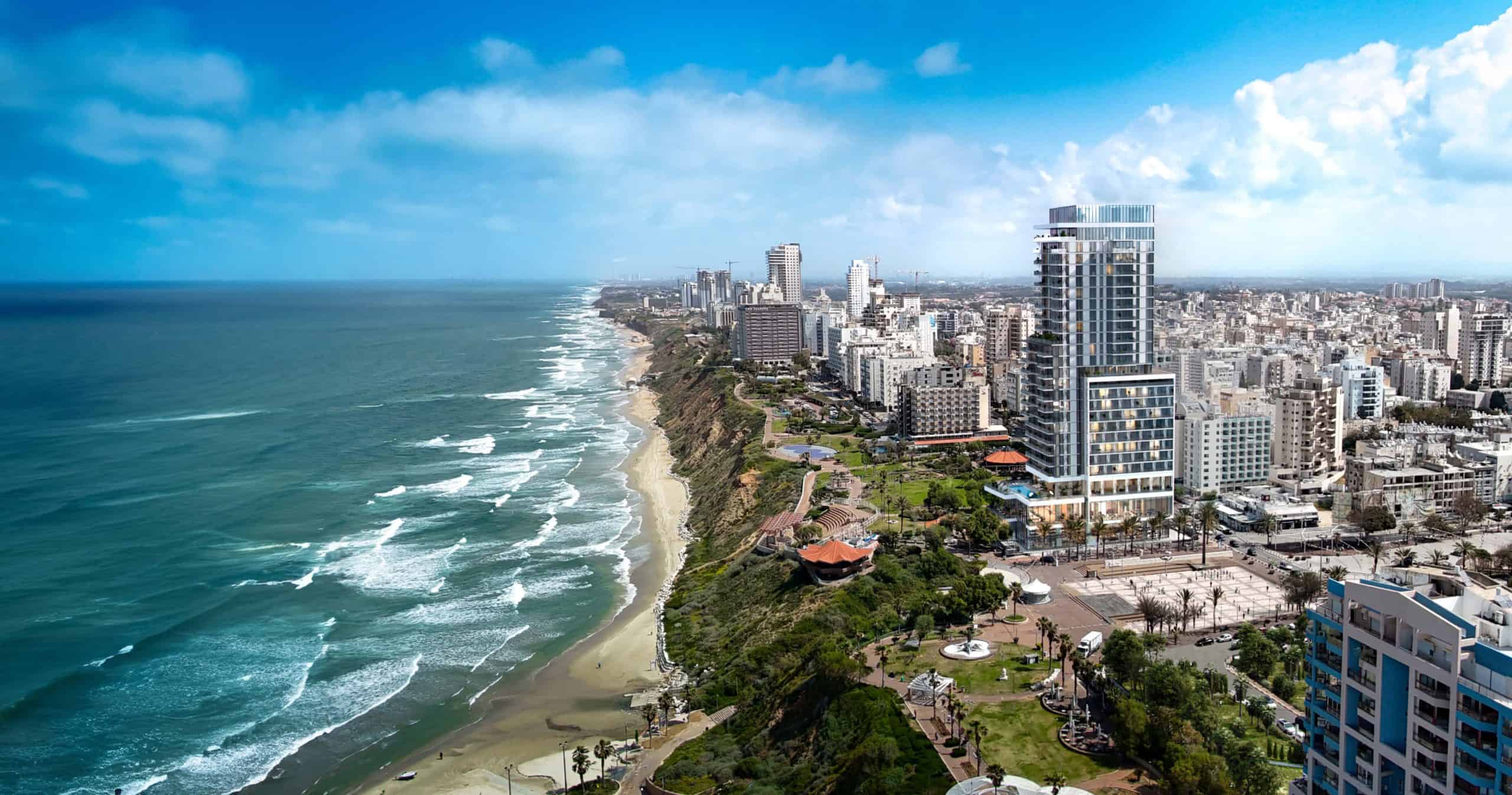 Step into a regal living experience. On the coast of Netanya, in the spot where the historic Esther Movie Theater once stood, Amram Avraham is constructing an exclusive and luxurious residential project overlooking the Mediterranean. This international-standard architectural gem, situated on the very coastline, was inspired by the world’s most beautiful riviera cities.